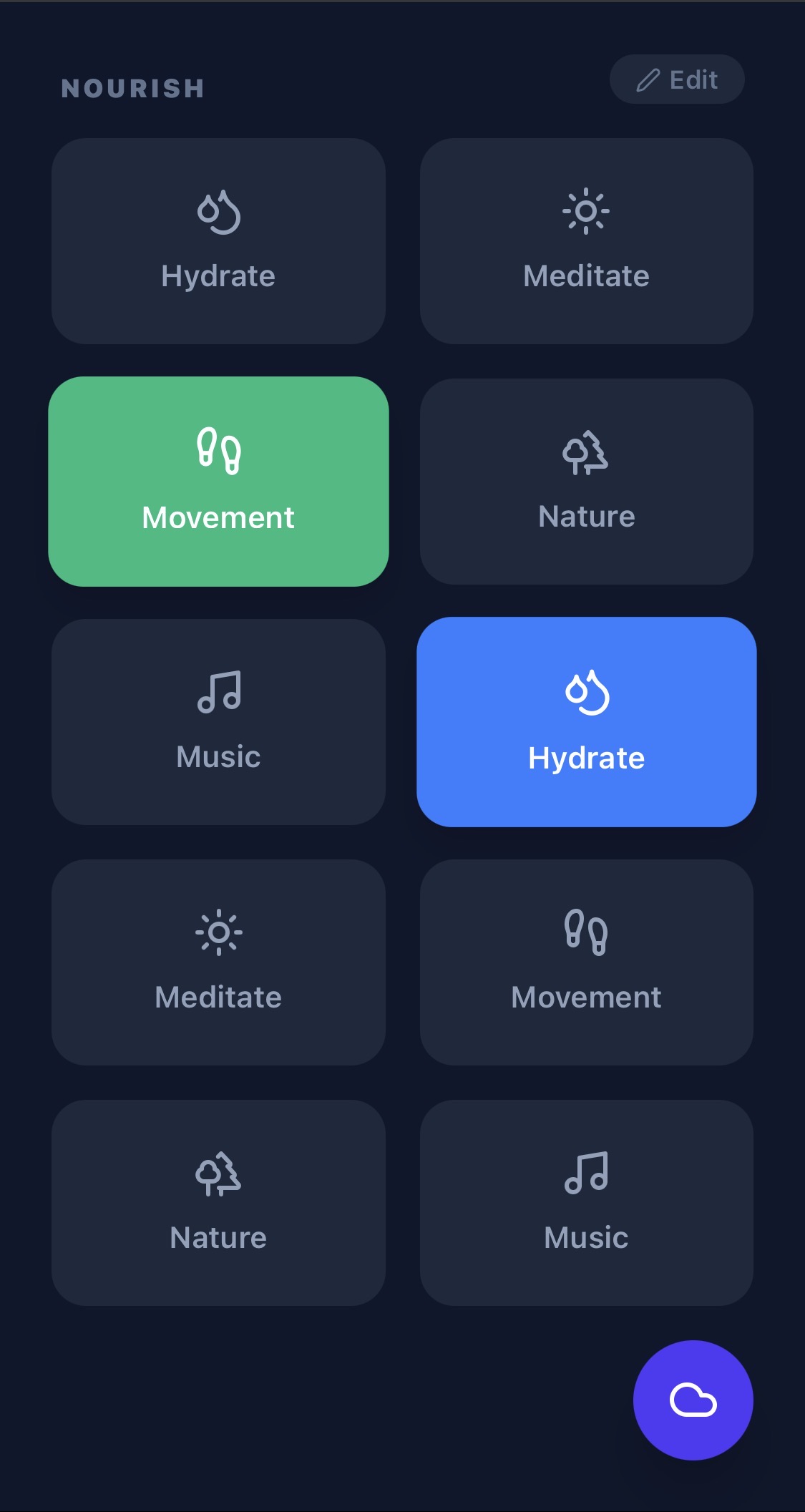 Feeling overwhelmed? Tap the Floating Cloud Button at the bottom right.